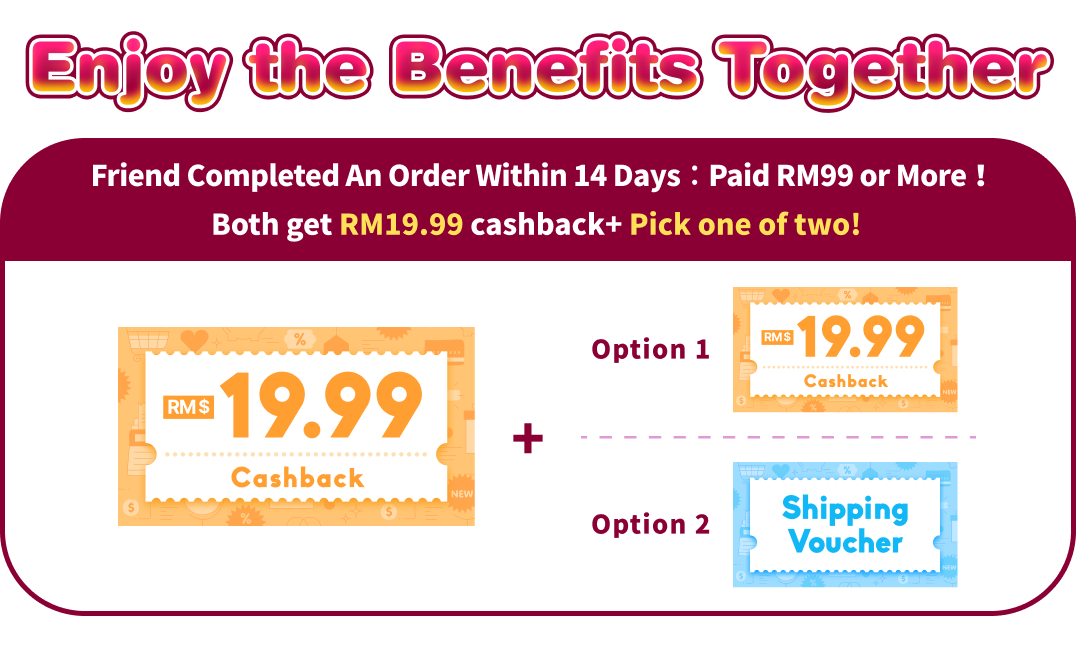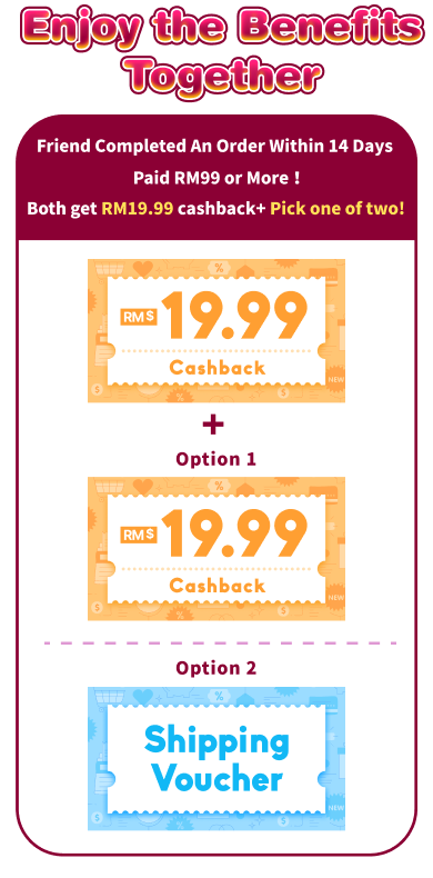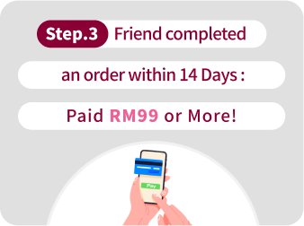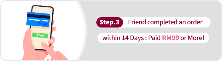 - The referred friend must complete their first payment by the end of the registration month with a minimum spending of RM99. Both you and your friend will qualify for the "Pick Your Reward" program once the friend’s first payment is completed. (Rewards will be credited on the 4th day at 12:00 AM after the payment is made.)