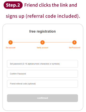 - During the campaign period, share your referral code with your friends. Your friend must enter the code during registration.