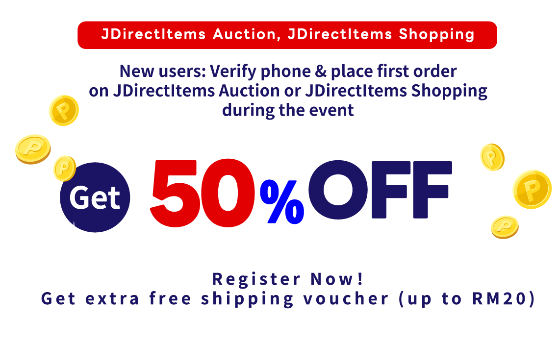 - Upon registering as a member and completing phone verification during the promotion period, your account will receive one "50% OFF Product Discount Coupon" and one "RM20 Free Shipping Coupon".