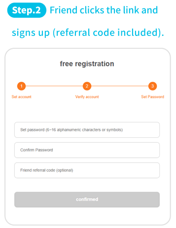 - During the campaign period, share your referral code with your friends. Your friend must enter the code during registration.