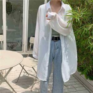 シースルーロングシャツ トップス シャツ 袖あり 長袖 萌袖 襟付き 前開き 透け感 シースルー ポリエステル かわいい 大人可愛い きれい