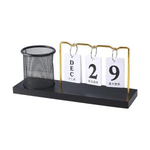 ペンホルダー付きデスクカレンダー、自宅寝室オフィス用デイリーデスクトップカレンダー