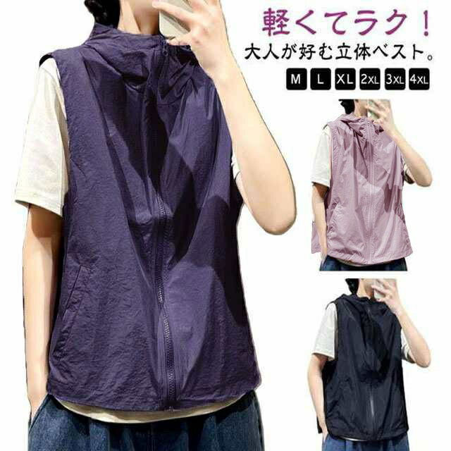 レディース 撮影 通気 ファスナー アウトドア 熱中対策 フード付き アウトドアベスト 夏 登山服 涼感 ジップベスト スポーツ ベスト レジャー 軽量 速乾 スポーツベスト お釣り 多機能 山歩き 裏メッシュ お釣り メッシュベスト