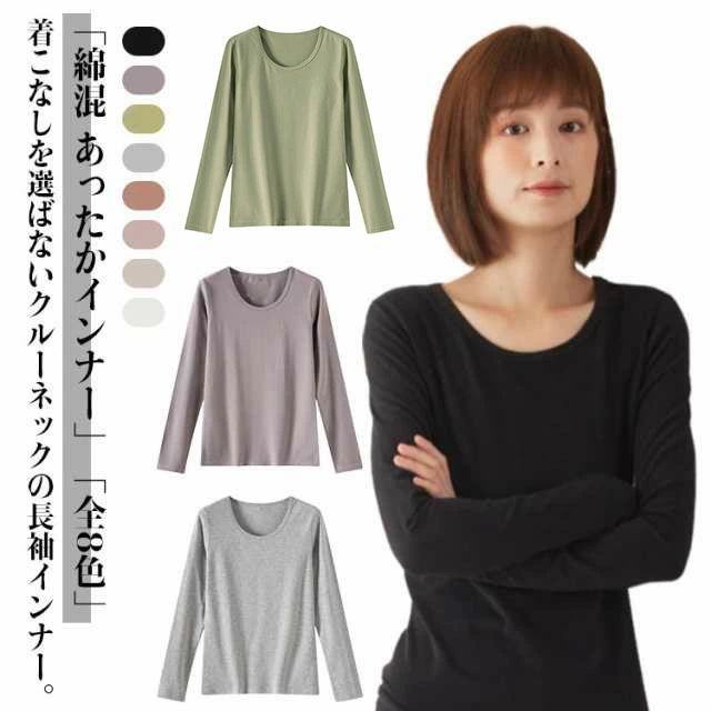 綿混 あったかインナー 長袖 Uネック クルーネック レディース 綿 インナーシャツ 肌着 下着 ストレッチ 暖かい ヒートテック トップス 冬 防寒 保温 吸湿発熱 大きいサイズ シンプル 無地 部屋着 送料無料