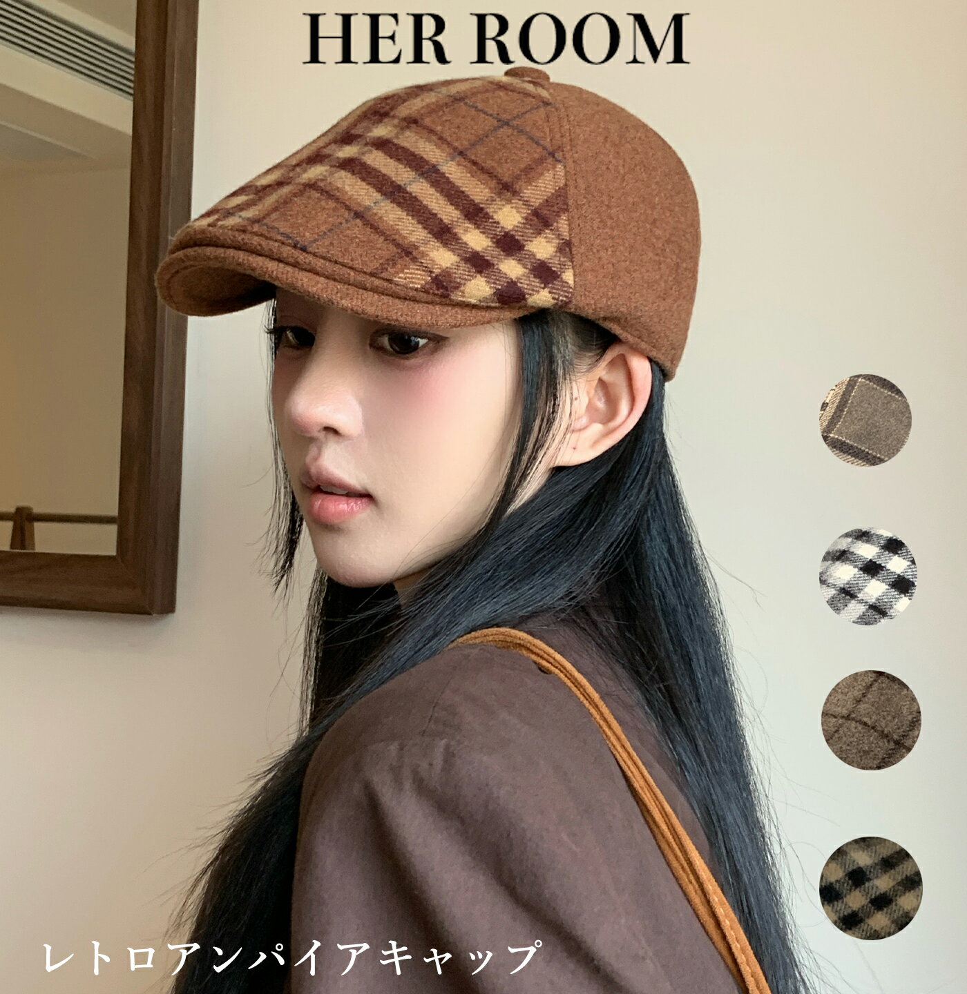おしゃれ つば付き ワークキャップ メンズ 秋 冬 厚手 ベレー帽 暖かい ツイード キャップ カラー チェック柄 レトロ ブリティッシュ フォワードキャップ