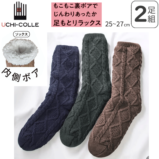 2足組 まとめ買い グンゼ ウチコレ 極厚 内側ボア ルームソックス 25-27 クルー丈 ケーブル柄 裏ボア GUNZE UCHI-COLLE ルームソックス 室内履き 冷え対策 在宅 スリッパ 保温 消臭 ホット ヒート 防寒 メンズ プレゼント 父の日 敬老の日 秋冬 楽天 通販 AUY143 送料込み