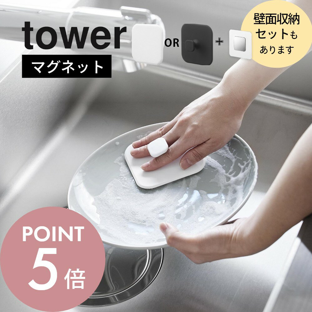 山崎実業 【 マグネットサニタリーシリコーンスポンジ タワー 】tower 1842 1843洗面室 軽い 握りやすい シリコン 汚れ落とし 白 黒 かわいい スタイリッシュ シンプル オシャレ