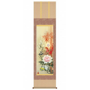 緒方葉水 開運掛軸(尺三) 「四季花吉祥競艶図」 化粧箱入り MD5-022【お寄せ品、返品キャンセル不可。欠品終売時連絡あり】