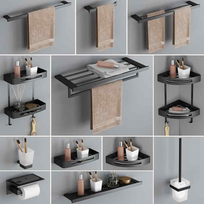 浴室 ラック セット タオル掛け バス ラック トイレブラシ ホルダー ペーパーホルダー ステンレス製 壁掛け 収納棚 浴室収納 ブラック
