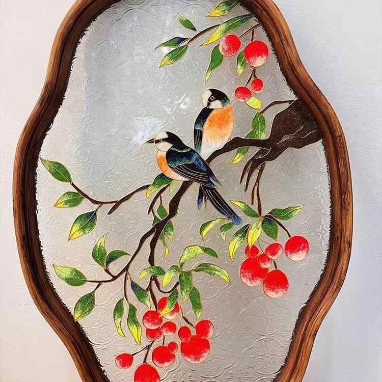 DIYキット クロワゾネエナメル画 材料セット 手作り掐絲技法 高級感 海棠花モチーフ 茶盤装飾 伝統工芸風 喜字デザイン 室内インテリア ギフト向け 再生素材使用 軽量仕上がり 通年使用