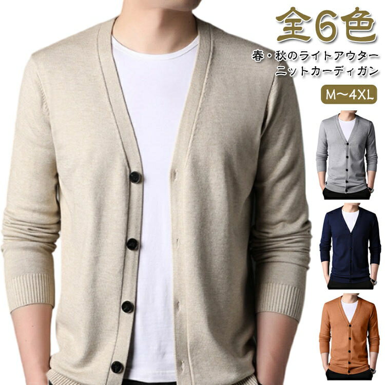 ニット カーディガン メンズ セーター スリム 紳士服 ビジネス タイト 細身 カジュアル ジャケット 薄手 無地 春服 ニットカーディガン 長袖 きれいめ オフィス ニットジャケット ライトアウター Vネック シンプル 春 秋 6色 M−4XL