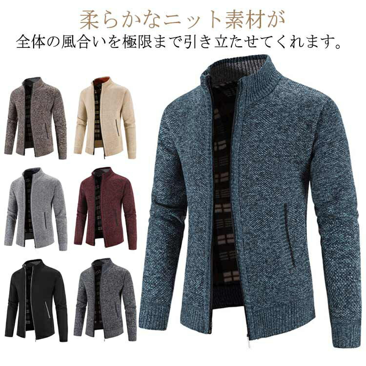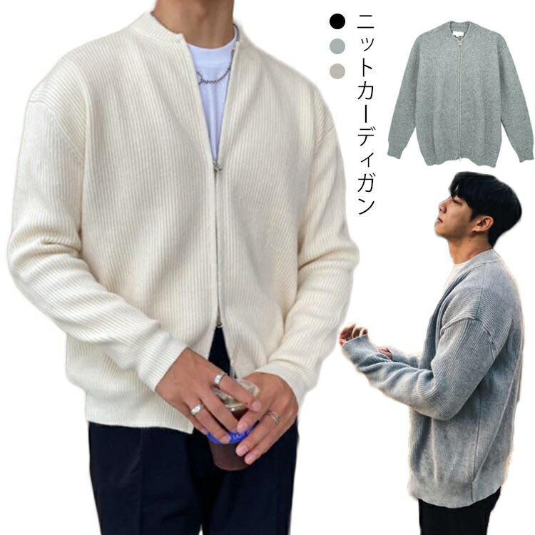 カーディガン メンズ ニットセーター ニットカーディガン スタンドカラー カーデ ジップアップ 無地 羽織り キレイめ トップス 長袖 メンズカジュアル 新作 人気 おしゃれ 秋 冬