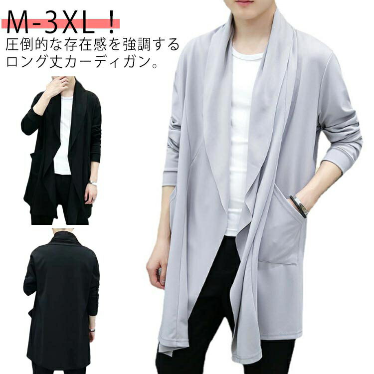 父の日 羽織り 薄手 ロングカーディガン メンズ 春 カーディガン ライトアウター フード付き 送料無料 接触冷感 ショールカラー 2タイプ シンプル 無地 長袖 日焼け防止 夏 秋 冷房対策 UVカット テーラードジャケット 秋服 サマージャケット