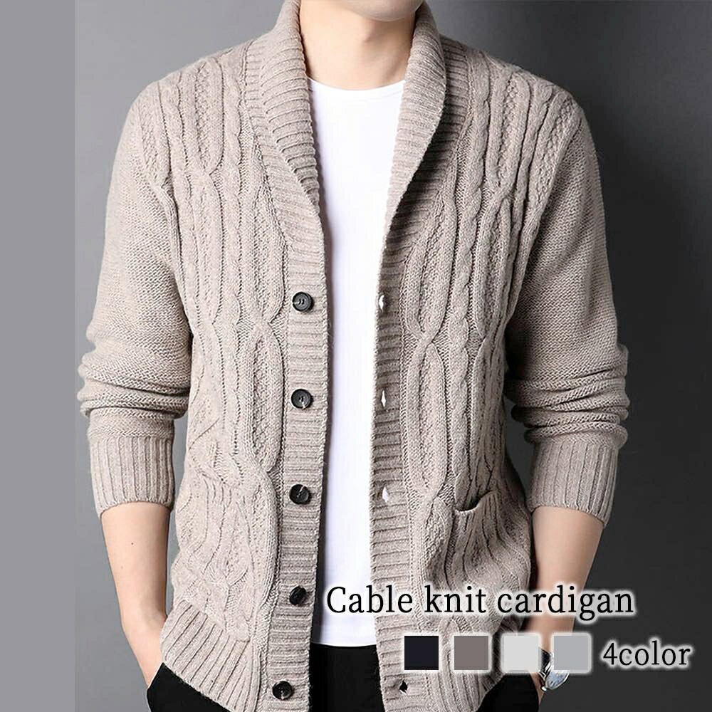 おす おしゃれ 秋 ウール ケーブル オフィス ブランド シニア きれいめ 厚手 ビジネス 長袖 ケーブルニットカーディガン メンズ