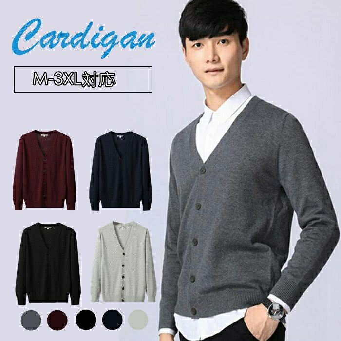 カーディガン メンズ ニットカーディガン 長袖 Vネック ニットトップス 学生制服 学生服 スクールニット スクールカーディガン 学生カーディガン 通学用 中学生 高校生 男子高校生 通勤 オフィス用 無地 カジュアル ボタン付き シンプル ゆったり 大きいサイズ対応 おしゃれ