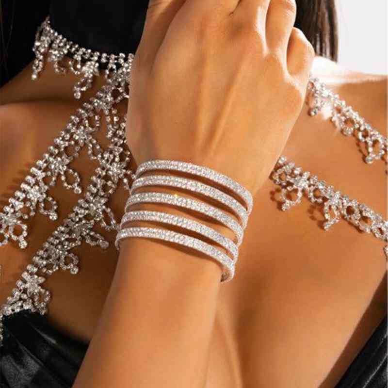 ブレスレット メンズ レディース バングル 腕輪 ラインストーン 多層 重ね付け風 キラキラ 豪華 高級感 アクセサリー ヒップホップ ストリート カジュアル パーティー イベント 普段使い シルバー ゴールド 個性的 太め