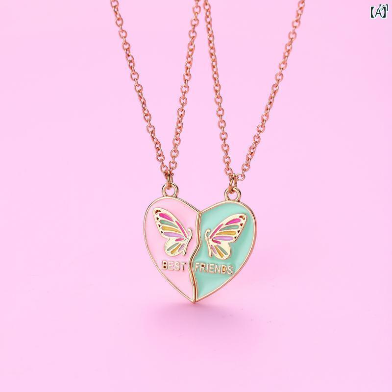 ユニセックス 男性 レディース アクセサリー オシャレ スプライス 愛 蝶 子供用 ネックレス 姉妹 親友 磁気 ペンダント マグネット ダブル チェーン