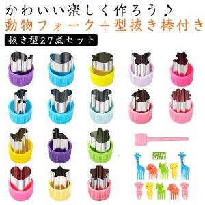 クッキー 型 小さい ステンレス 抜き型 クッキー 型抜き 16種類 動物 フォーク 10本 型抜き棒付き 可愛い 星 ハート ねこ 恐竜 魚 お花