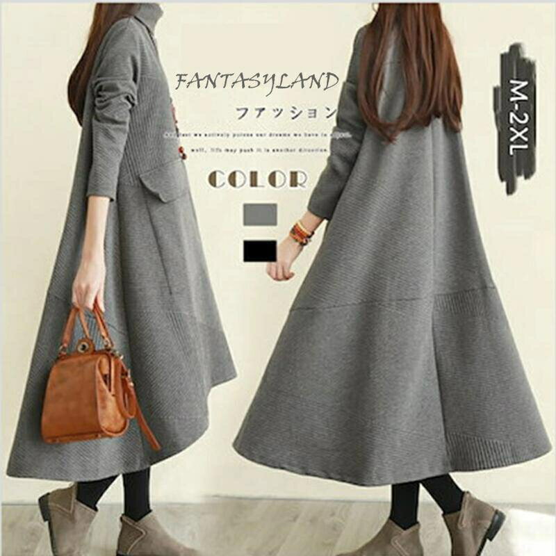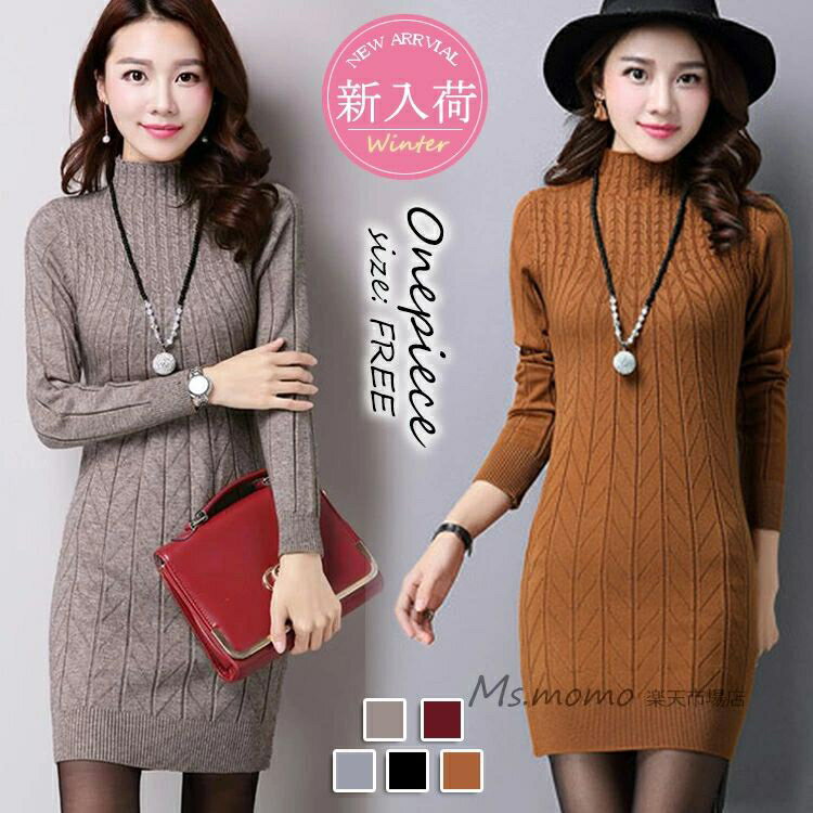 全10色×6サイズ!ニットワンピース ニットワンピ タートルネック ワンピース ニット ケーブル編み オフタートル 秋 秋冬 大きサイズ 膝下丈 防寒 無地 おしゃれ 女性