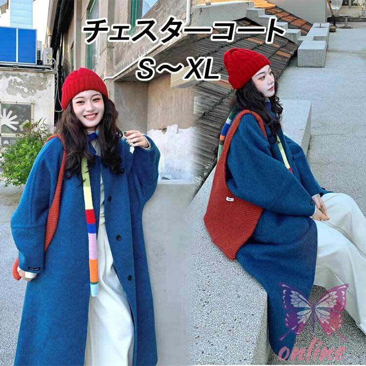 チェスターコート レディース 秋冬 40代 ロングコート ブルー ロング丈 ラ シャコートロング丈 厚手 オーバー ゆったり アウター 通勤 着痩せ オシャレ 大人