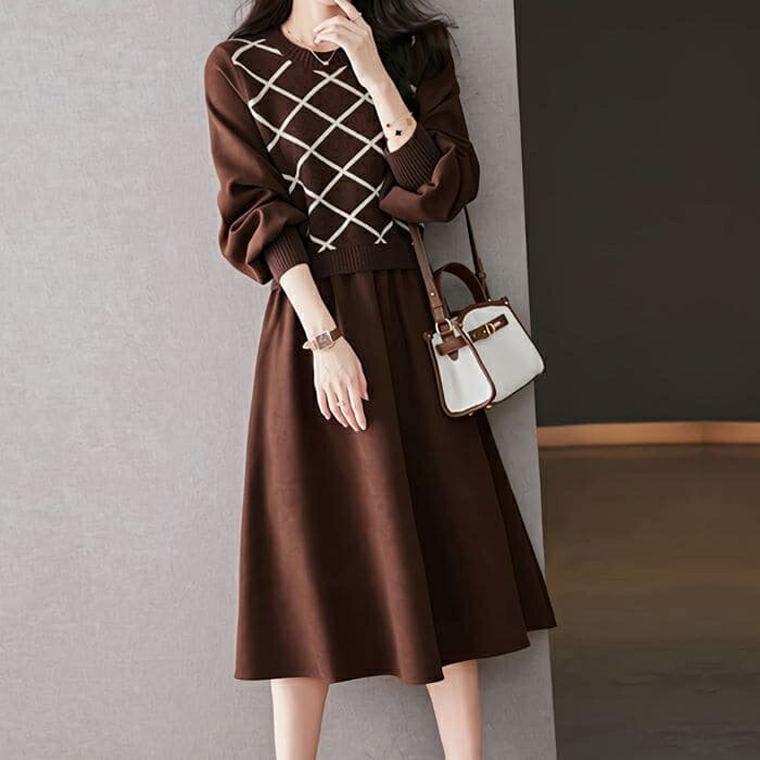 ニット セットアップ ワンピース 長袖 ニットセーター 上下セット 2点セット ニットセットアップ 春 秋 冬 ロングワンピース カジュアル シンプル ゆったり 大きいサイズ 体型カバー 着?せ お洒落 可愛い