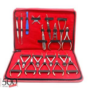 18ピースの基本的な歯科矯正歯科用器具コンポジットキット、ワイヤーエンドカッティングプライヤー、ブラケット取り外しプライヤー、締め付けプライヤー、バック