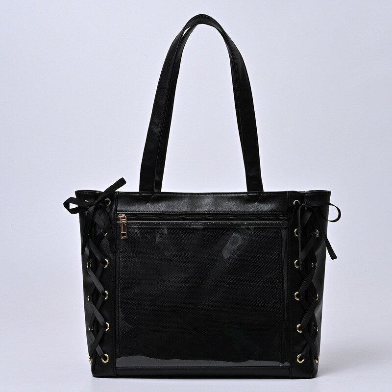 カバン 鞄 痛バ デコバッグ ビニールバッグ 学生 クリアバッグ 無地 大きめ PU革 レースアップ レディース トートバッグ 見せバッグ ガールズ 痛バッグ 大人用 ライブ用 イベント用 推し活 りぼん付き 缶バッジ ぬいぐるみ かわいい a4