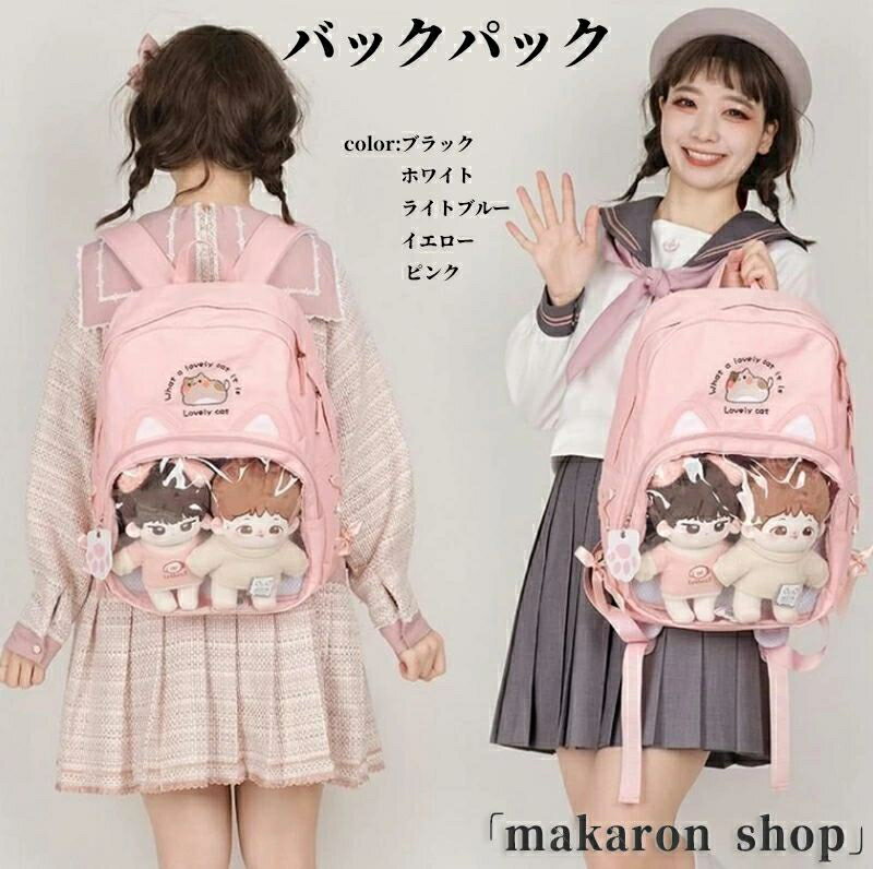 痛バッグ リュック クリアバッグ ビニール ポケット バックパック 軽量 多機能 リュック 缶バッジ ぬいぐるみ 痛バ デコ バッグ 通勤 通学 かわいい 学生かばん 学生鞄 学生バッグ ライブ イベント デコバッグ 大容量