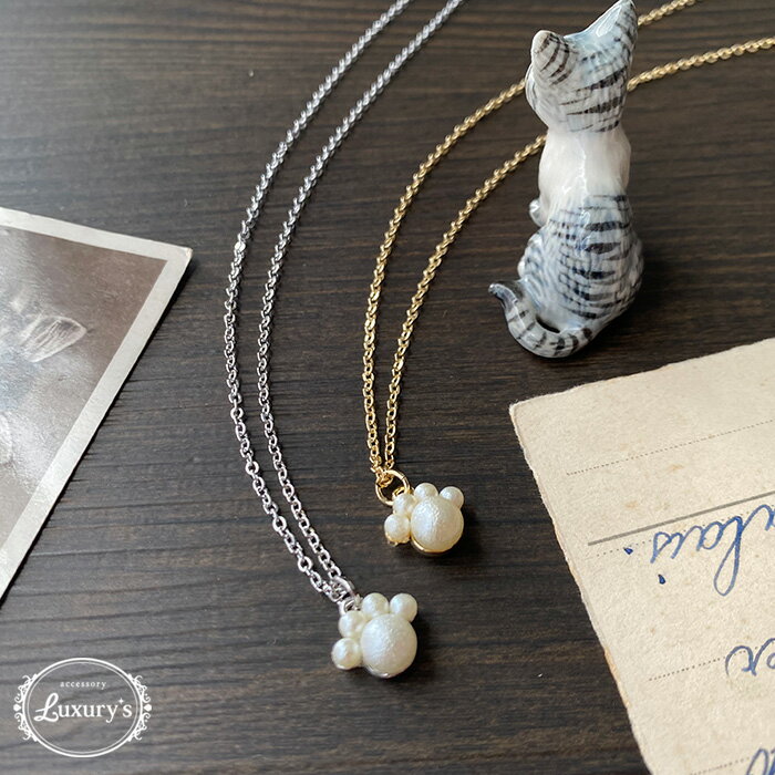 全品対象クーポン配布中!ネックレス 肉球 パール 猫 ネコ ねこ 女の子 アニマル 動物 にくきゅう シュガーパール かわいい おしゃれ 猫グッズ ねこグッズ シンプル 大人 キッズ 子供 レディース 誕生日 Luxury's ラグリーズ ギフト プレゼント