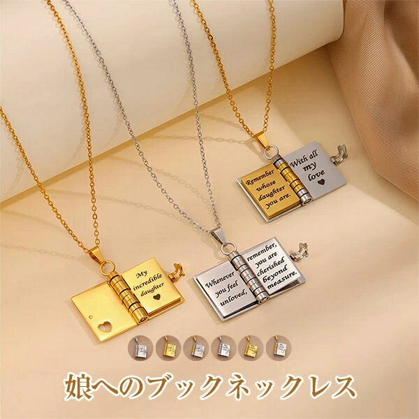 マイリトルスターブックネックレス、娘のためのブックネックレス、6ページの刻印情報付きで開閉可能 誕生日プレゼント 卒業祝い 愛のジュエリー 娘へのブックネックレス メール便