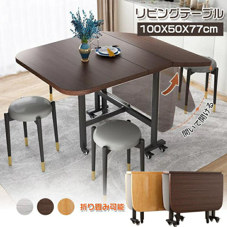 リビングテーブル 木製テーブル 天板折りたたみテーブル 角型テーブル 伸縮ダイニングテーブル スリム 折りたたみ 伸長式 ダイニングテーブル ナチュラル 折り畳み可能 コンパクト収納 省スペース 食卓 テーブル