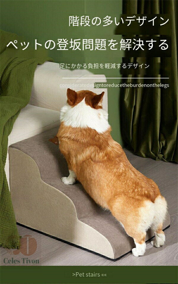 犬階段 ドッグステップ ステップ 犬用ステップ 2段 3段 4段 グレー ドッグステップ ペット階段 滑り止め付き 洗える カバー取り外し 安全 耐久 すべての年齢のペットに適しています