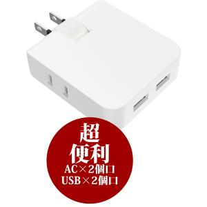 電源タップ USBポット付き 急速充電 AC 4個口 + 2USB スイッチ 雷サージ 充電器 おしゃれ ホワイト 延長コード 定番 人気 延長線 延長ケーブル アタブタ