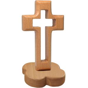 キリスト クロス キリスト教 礼拝 オーク色 十字 置く物 インテリア 装飾 卓上 教会学校(高17cm)