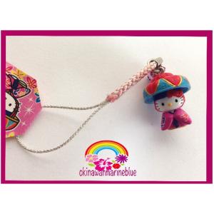 ストラップ ハローキティー国際通り花笠バージョン ご当地グッズ アニメ 沖縄お土産 沖縄限定