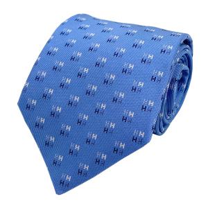 【新品】エルメス HERMES ネクタイ ヘヴィシルクタイ 8cm《 CARRE D H 》ブルー 水色 青 紺 ホワイト 白 プレゼント ギフト メンズ 男性 H656192T 09
