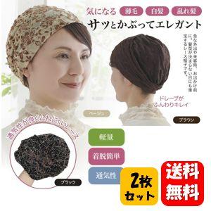 【送料無料】サッとかぶれるレース帽子×2枚セット 気になる白髪や薄毛、乱れ髪をサッとかぶってエレガントに♪急な外出や来客時にオススメ♪ 帽子 エレガント