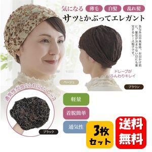 【送料無料】サッとかぶれるレース帽子×3枚セット 気になる白髪や薄毛、乱れ髪をサッとかぶってエレガントに♪急な外出や来客時にオススメ♪ 帽子 エレガント