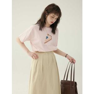 「北島AMUU」 ピンク カラー ストレート ショルダー Uネック ゆったり 半袖 Tシャツ レディース 夏新作 カジュアル 万能 トップス