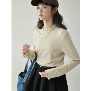 「北島AMUU」 薄手 ラウンドネック スリムフィット リブ ニット Tシャツ レディース 夏用 ベースレイヤー 半袖 トップス