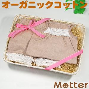 出産祝い ギフト 女の子オーガニックコットン 天竺レース付キャミソール・パンツ・ブラウン