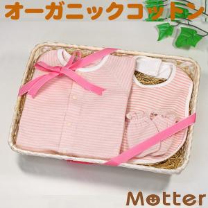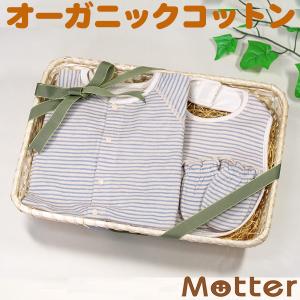 出産祝い ギフト 女の子・男の子オーガニックコットン 長袖ボーダーコンビ肌着×2枚・スタイ