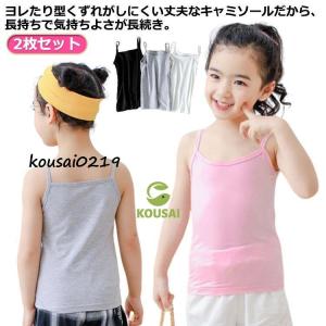 2枚セット!キャミソール タンクトップ インナー 子ども 肌着 キッズ 女の子 小学生 スクール 春 夏 下着 無地 キャミ 白 黒 グレー ピンク