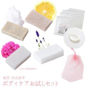 霊芝 冬虫夏草 ボディケア お試しセット ソープ 10g1個 泡ネット 1個 ボディミルク 5g5個