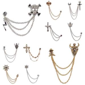 ラペルピン ピンブローチ ラペルチェーン メンズ レディース アクセサリー 飾り シルバー&ゴールド 十字架、星、スカル、バイキング、劔モチーフの15種