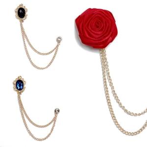 ラペルピン チェーン・ブローチ ラペルチェーン メンズ レディース アクセサリー 飾り ブラック、ブルーストーン飾り、フラワー飾り 3種