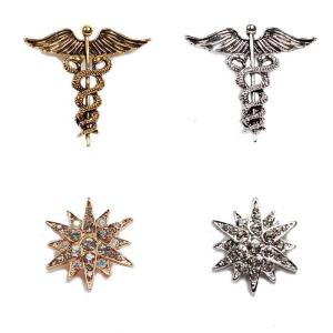 ラペルピン ブローチ ピンバッジ メンズ レディース アクセサリー 飾り 星、カドゥケウスの翼や蛇紋章モチーフ シルバー ゴールド色