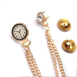 ラペルピン ブローチ ピンバッジ メンズ レディース アクセサリー 飾り 時計モチーフ チェーンブローチ ゴールド色 キュービック