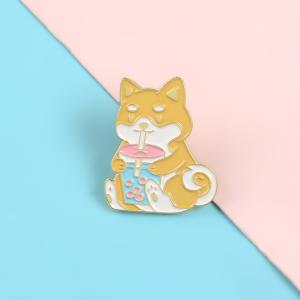 ピンバッジ タピオカを飲む柴犬 ピンブローチ メンズ レディース ラペルピン バッジ アクセサリー、送料無料