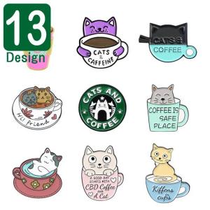 ピンバッジ ブローチ コーヒーとネコをモチーフ かわいい13coffeeデザイン展開 メンズ レディース ラペル ピン バッジ アクセサリー、送料込み、送料無料